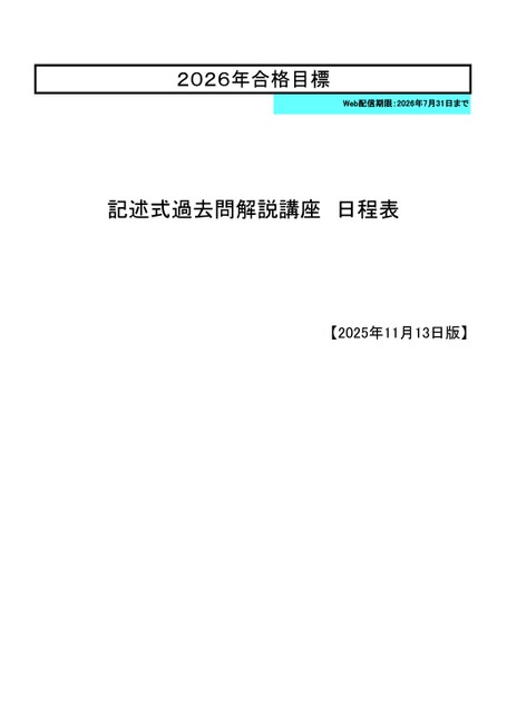 2026年合格目標Web配信期限:2026年7月31日まで記述式過去問解説講座日程表【2025年11月13日版】