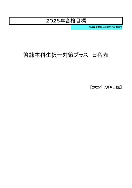 2026年合格目標Web配信期限:2026年7月31日まで答練本科生択一対策プラス日程表【2025年7月6日版】