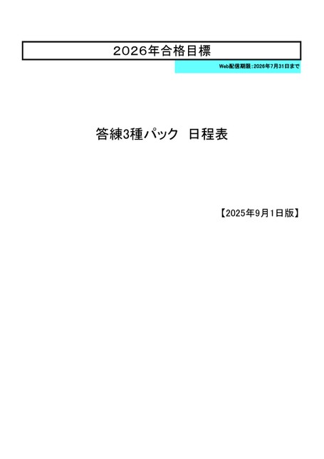 2026年合格目標Web配信期限:2026年7月31日まで答練3種パック日程表【2025年9月1日版】